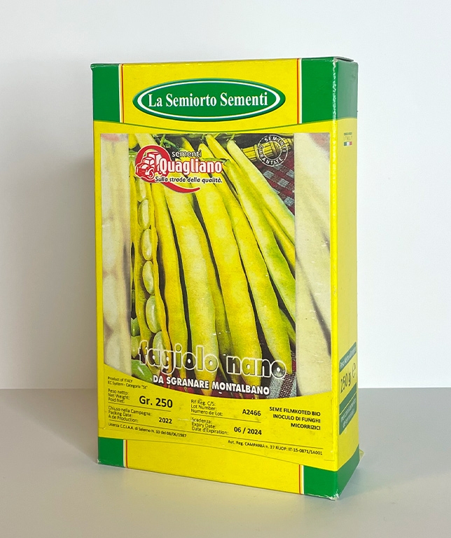 Varietà a seme bianco allungato e leggermente appiattito,di tipo cannellino,con pianta vigorosa e produttiva.